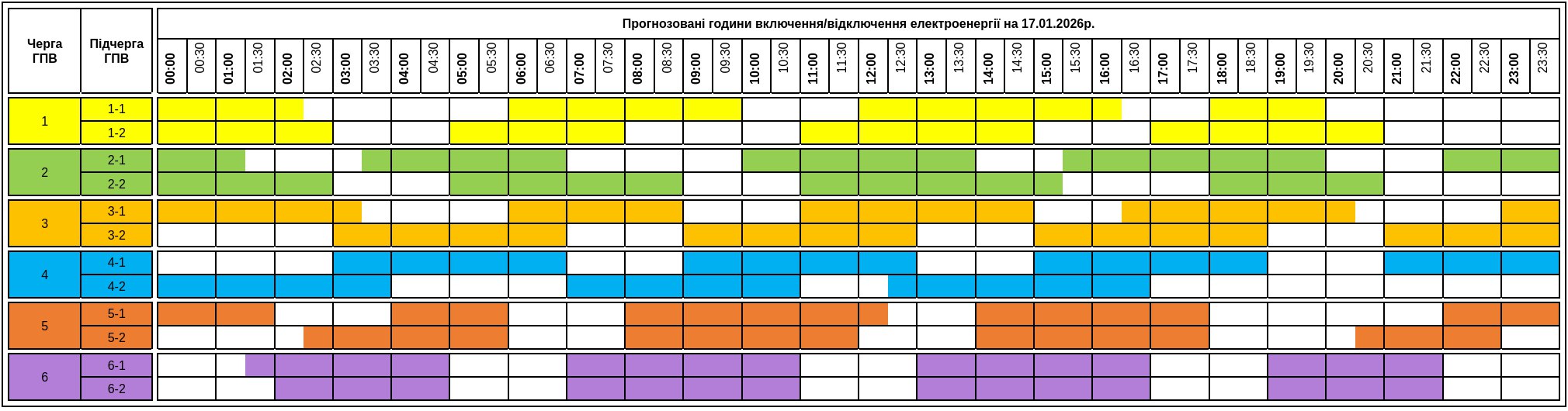 Графики отключений в Закарпатской области 17 января