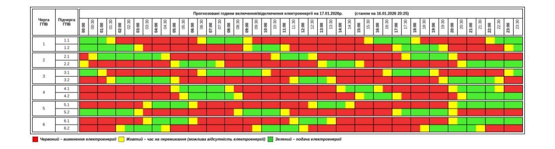 Графики отключений во Львовской области 17 января