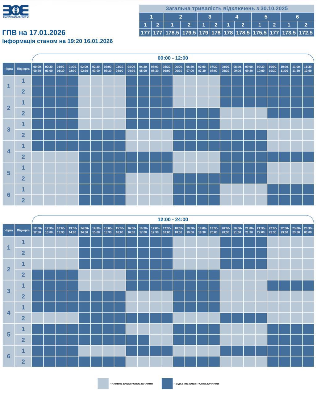 Графики отключений в Волынской области 17 января