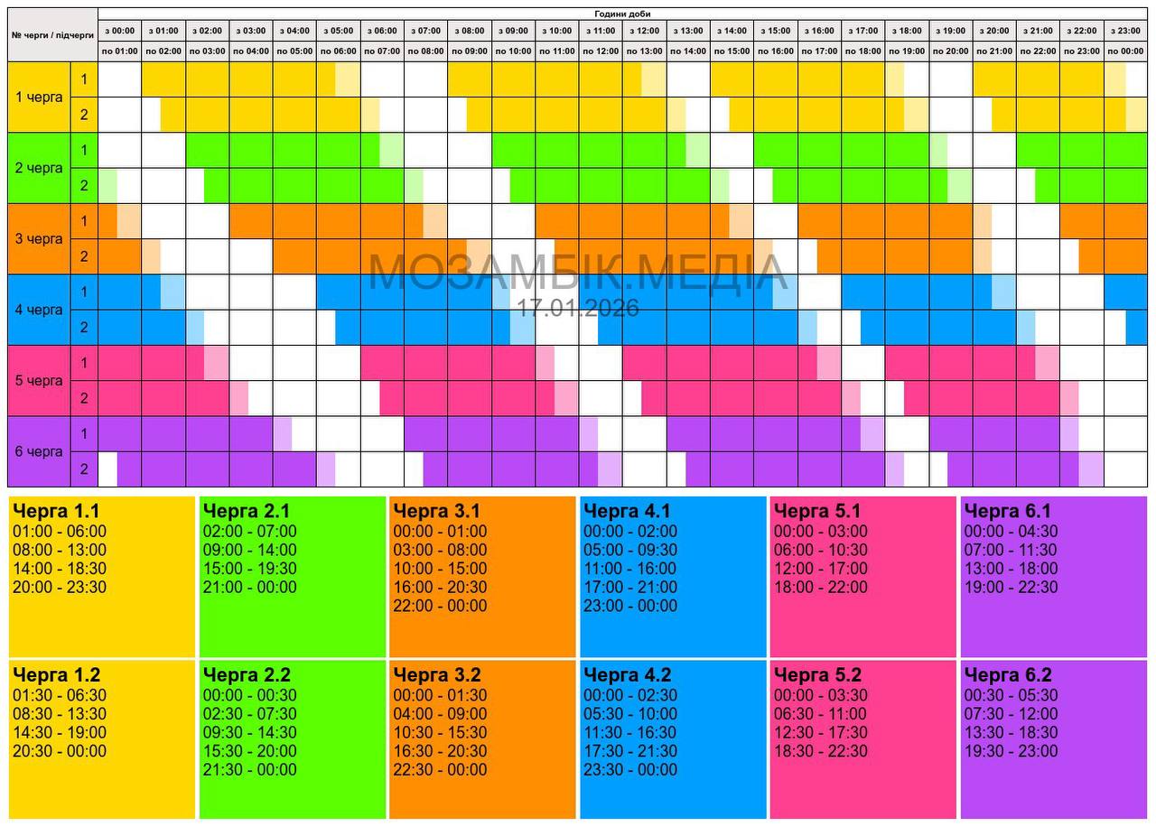 Графики отключений в Запорожской области 17 января