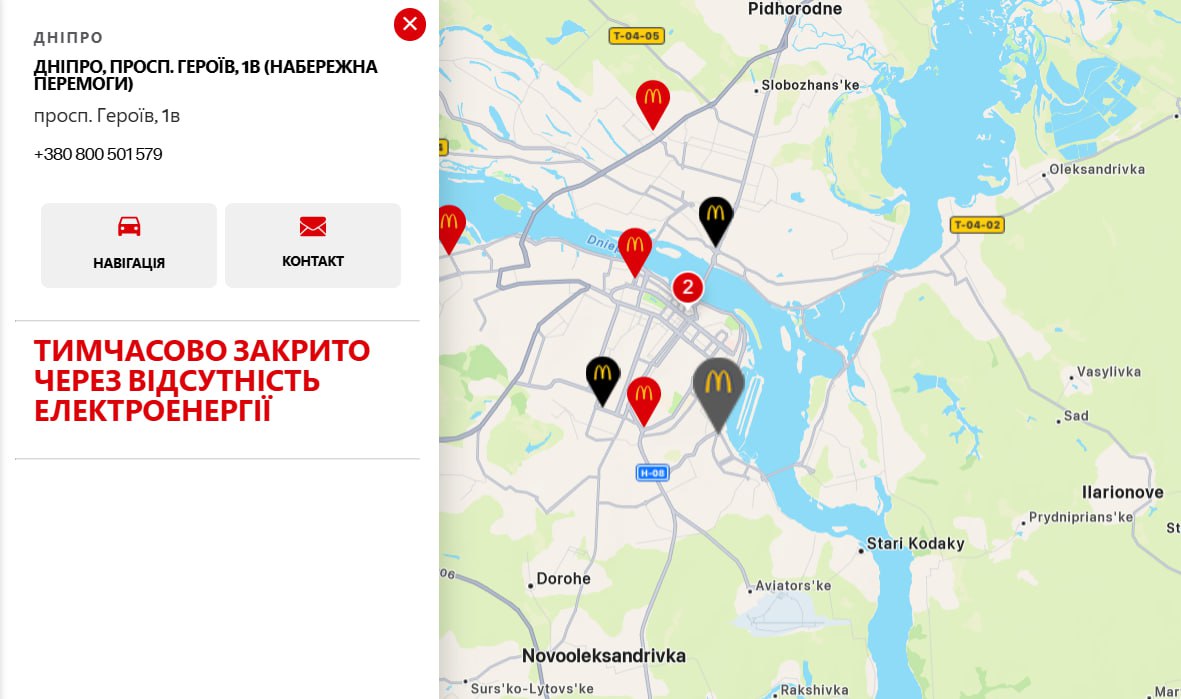 В то же время, читатели рассказали "Телеграфу", что в Днепре сейчас также недоступна доставка из McDonald’s. Служба доставки указівает, что заведение откроется завтра, 22 января.