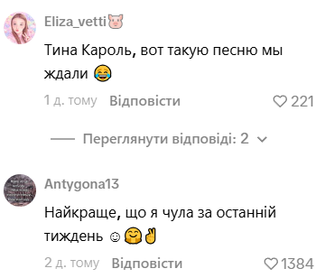 В комментариях под роликом украинцы шутят, что ждали такую песню про отключения. Таким образом, юмор и самоирония блогера оказались ближе аудитории, чем серьёзный посыл песни Тины Кароль.