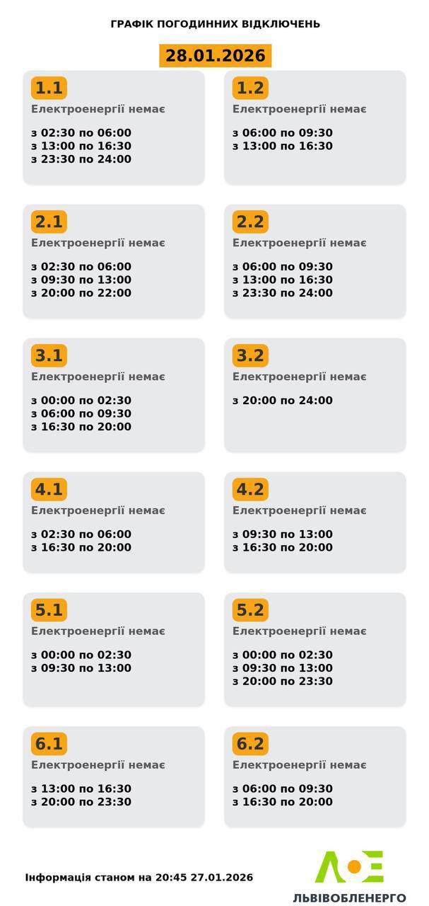 Из-за энергетического террора России украинцы вынуждены жить в условиях постоянных отключений света. В среду, 28 января, в течение всего дня в стране будут отключения электричества для бытовых потребителей, сообщает "Укрэнерго"