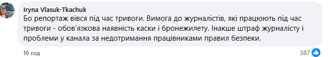 В то же время другая часть пользователей объяснила каску обычным соблюдением мер безопасности, ведь репортаж могли снимать во время воздушной тревоги.