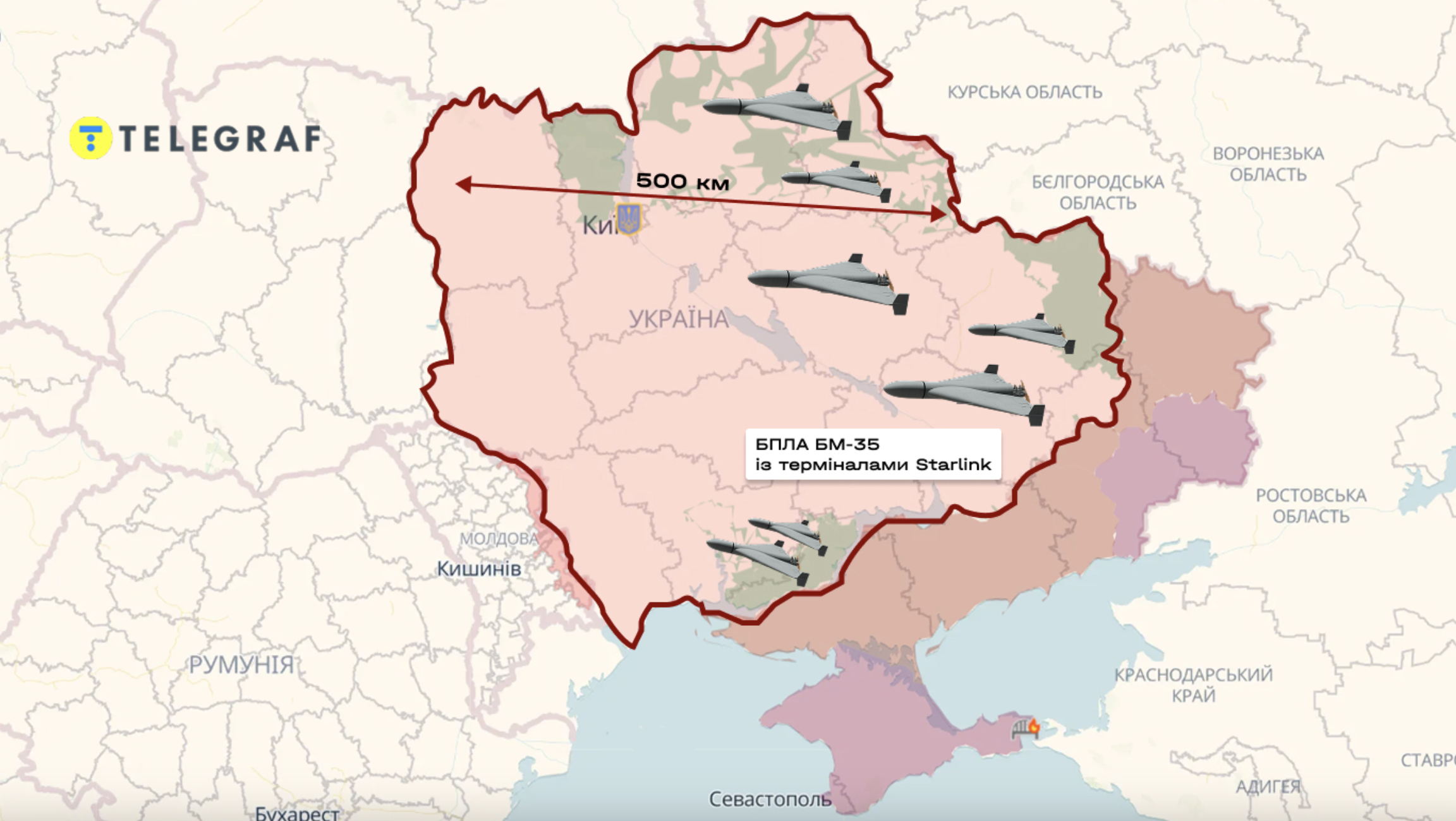 Куда достанет дрон БМ-35 с терминалом Starlink