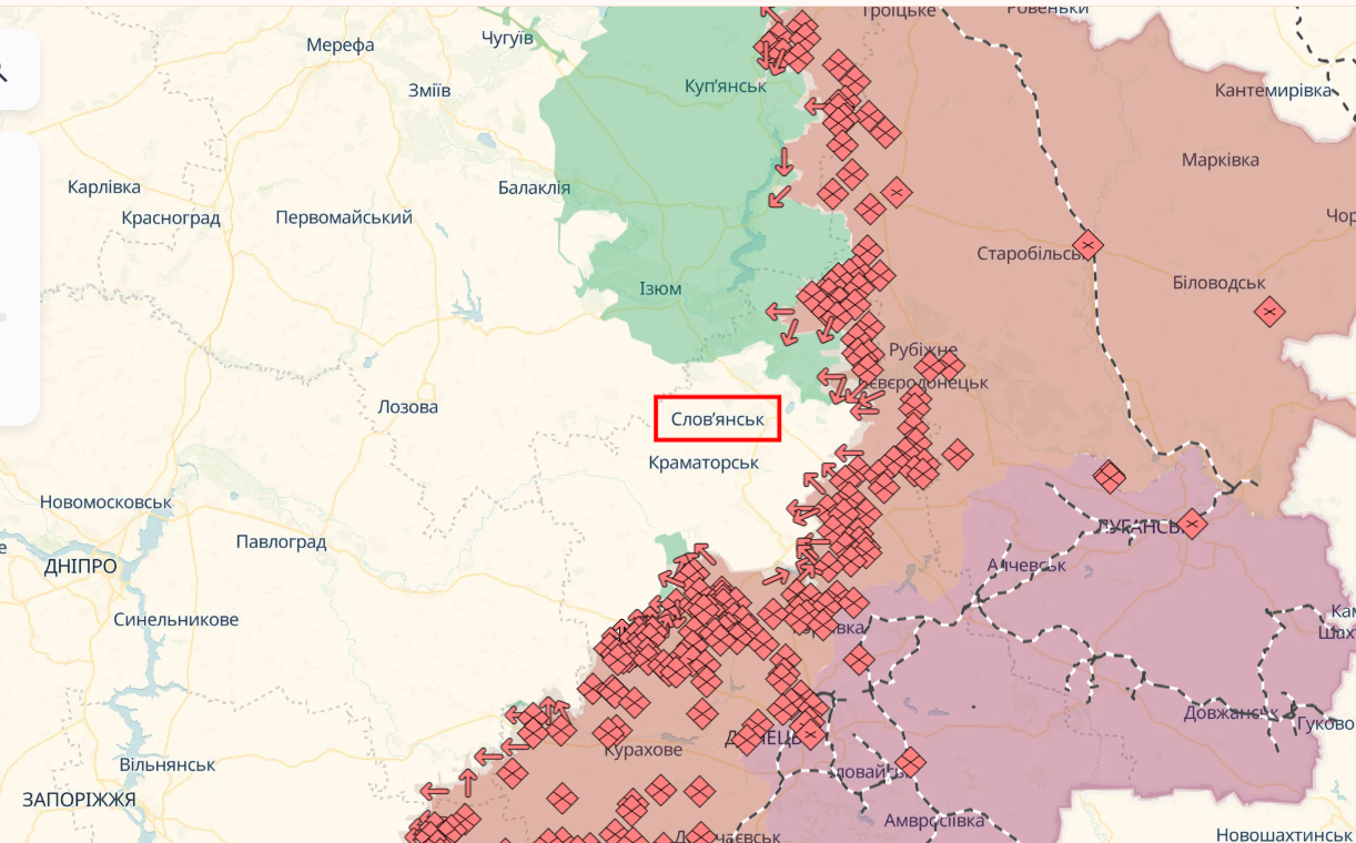 Ситуация в районе Славянска на карте deepstate