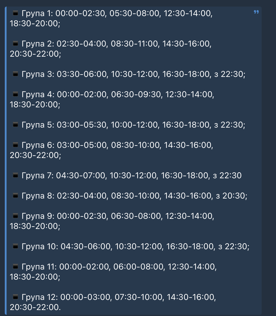 Как узнать свою очередь отключения в каждой области Украины, читайте в статье на "Телеграфе" по этой ссылке.