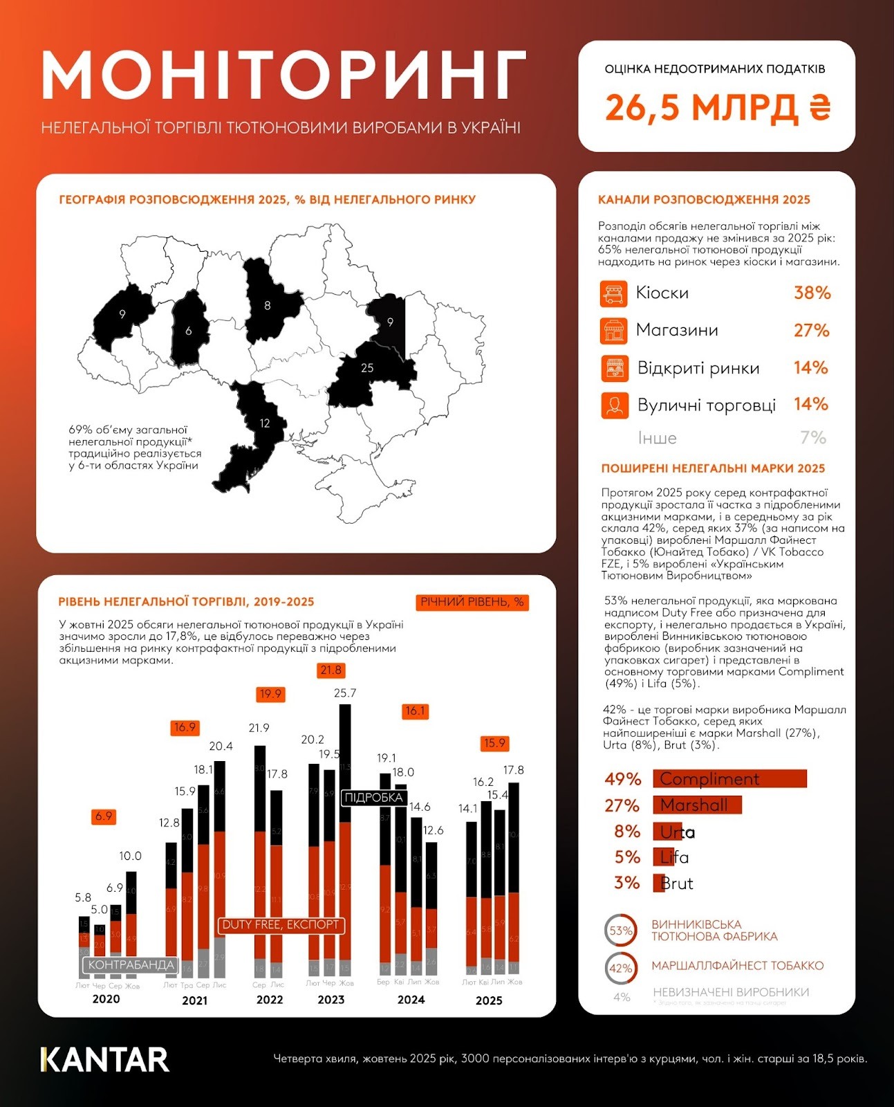 2025 год показал значительный скачок производства контрафактных сигарок в Украине. Данные Kantar-Украина