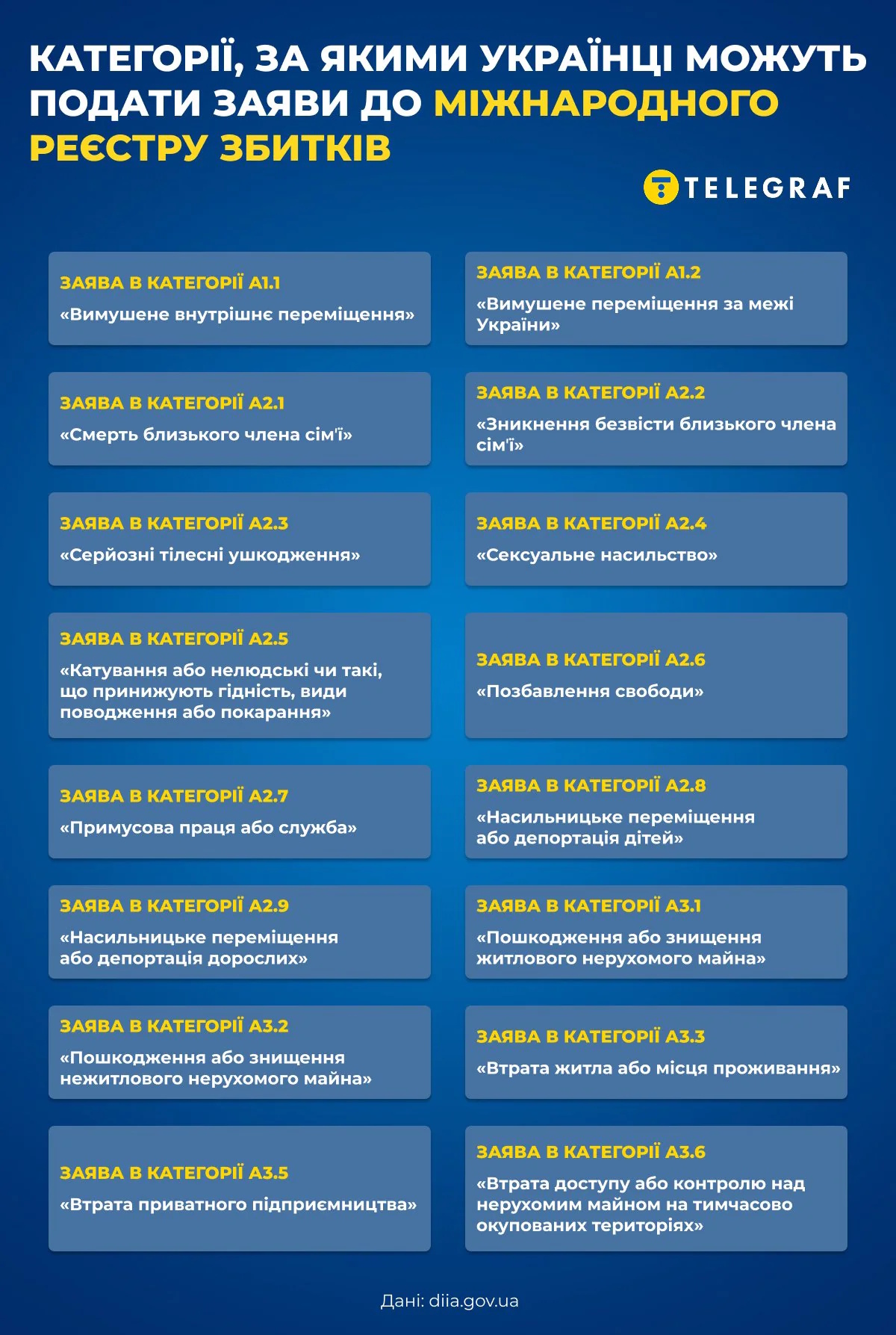Это заявления о травмах, персональных убытках, связанных не только с разрушением, но и потерей доступа к имуществу на оккупированных территориях. Важен и моральный момент, ведь речь идет об ответственности Российской Федерации за причиненный вред,