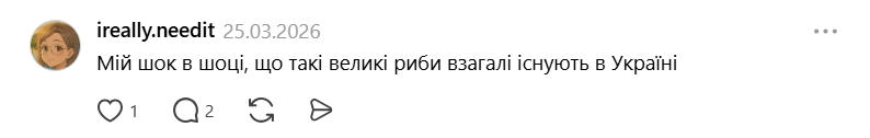 В комментариях удивляются, что в Украине существуют столь крупные экземпляры. "Мой шок в шоке, что такие крупные рыбы вообще существуют в Украине", — пишет одна из комментаторов.