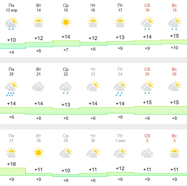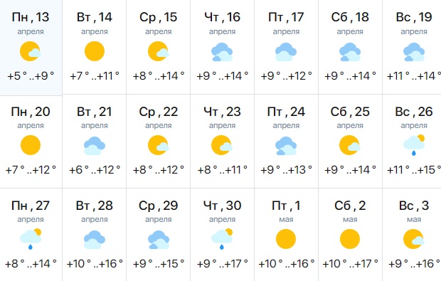 Об этом сообщается в прогнозах погоды. Так, по данным погодного сайта Meteofor, с 14 по 27 апреля в Одессе потеплеет. Воздух в этот период времени может прогреться вплоть до +9+16 градусов. Однако вместе с потеплением в областной центр придут тучи и дожди.