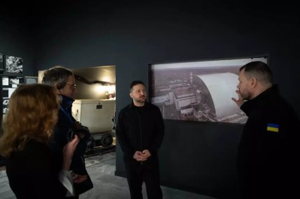 В день 40-й годовщины аварии на Чернобыльской атомной электростанции Владимир Зеленский и генеральный директор Международного агентства по атомной энергии Рафаэль Гросси первыми увидели обновленную экспозицию "Чернобыль: люди и смыслы".
