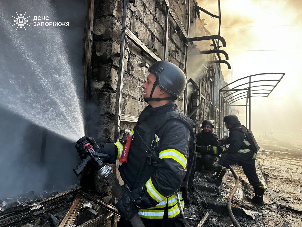 "В результате очередного вражеского удара по Запорожью загорелись магазины и остановка, повреждена маршрутка, жилые дома и цех одного из предприятий города", — сообщает он.
