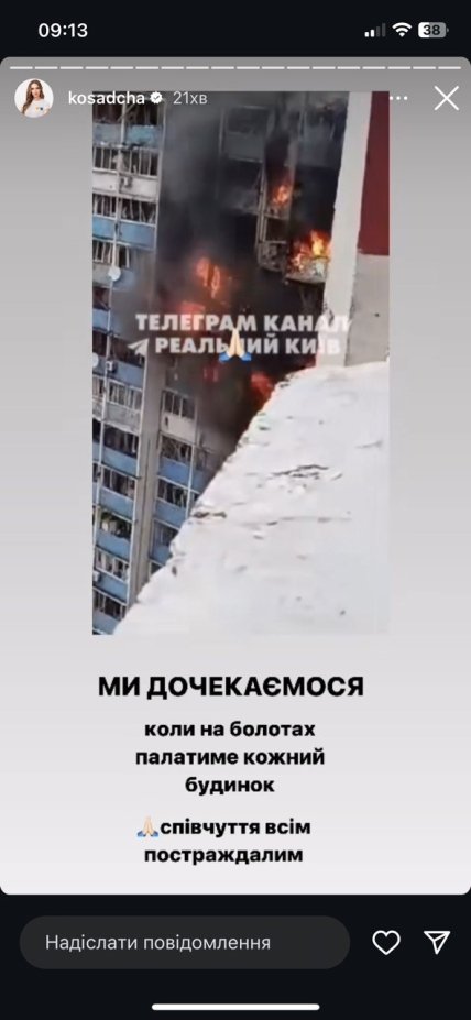 Певица выразила соболезнования пострадавшим и их семьям и поделилась печальным известием. "От удара по гостинице погиб двухмесячный мальчик", — написала звезда на своей странице в Instagram.
