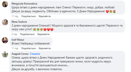 Подписчики Елены Мозговой поздравили ее с 50-летием теплыми словами под постом в соцсети.