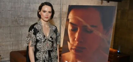 Прическу актриса выбрала аккуратную. Легкие волны на коротких легко вложенных волосах. Макияж Дейзф Ридли сделала тоже не яркий. Выделила глаза с помощью косметики и нарисовала легкий румянец.