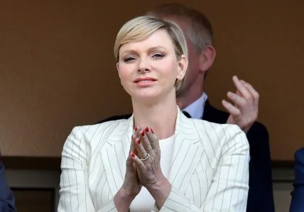 Княгиня Шарлен выбрала стильный лук, дополнившийся красивой укладкой на короткую стрижку и дневным макияжем с акцентом на глаза.
