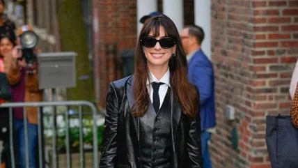 В кожаном костюме-тройке и галстуке: Энн Энн Хэтэуэй ошеломила трендовым образом в Нью-Йорке (фото)