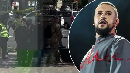 Известный украинский исполнитель Монатик, который недавно рассказал о необычном требовании в своем райдере, попался в руки представителей ТЦК и полиции. Кадры с проверкой документов у артиста снял фотокорреспондент "Телеграф" Ян Доброносов.